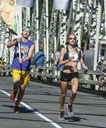 Last weekend was the Bridge of Flowers 10k, which I won last year, so I had the extra pressure of winning again this year (and wearing bib #1, ug!).  The race for those that don't know is not a typical 10k.  The first mile is uphill, the second is rolling and the third is a MONSTER hill.  I'm talking about 2 minutes slower than the rest of your miles easily.  I was nervous before the race, but also confident I could shave some time off of last year's finish, particularly in the first 2 miles.  I went out too conservative last year I think, in preparation for the big hill, but in reality, nothing is going to make that hill easier, you are going to be going slow, so I figured I'd go out a little harder.  Each one of my miles this year were faster than last year's.  My splits were 5:47, 5:52, 7:52, 5:28, 5:55, 5:42, then who knows for the .2!  As you can tell, the hill sucks, but I did get up it about 25 seconds faster than I did last year.  I also improved the 4th mile significantly this year.  Last year my legs were so shot from the uphill, I didn't make up as much as I wanted on the downhill mile.  Overall it was a great day, I ran 37:46 (which was a minute and 3 second course PR for me) and had fun with my teammates.  Our team won overall and took home some cash :)
